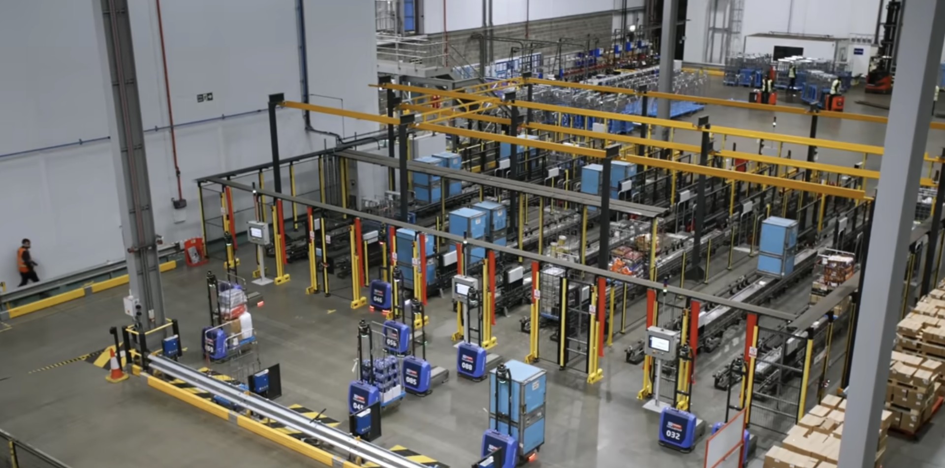 The 36 automated handover locations ensure smooth transitions between different stages of the material handling process, creating a fully integrated system that connects existing warehouse infrastructure with new automation technology.