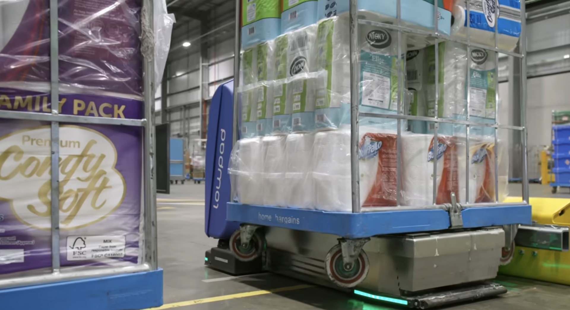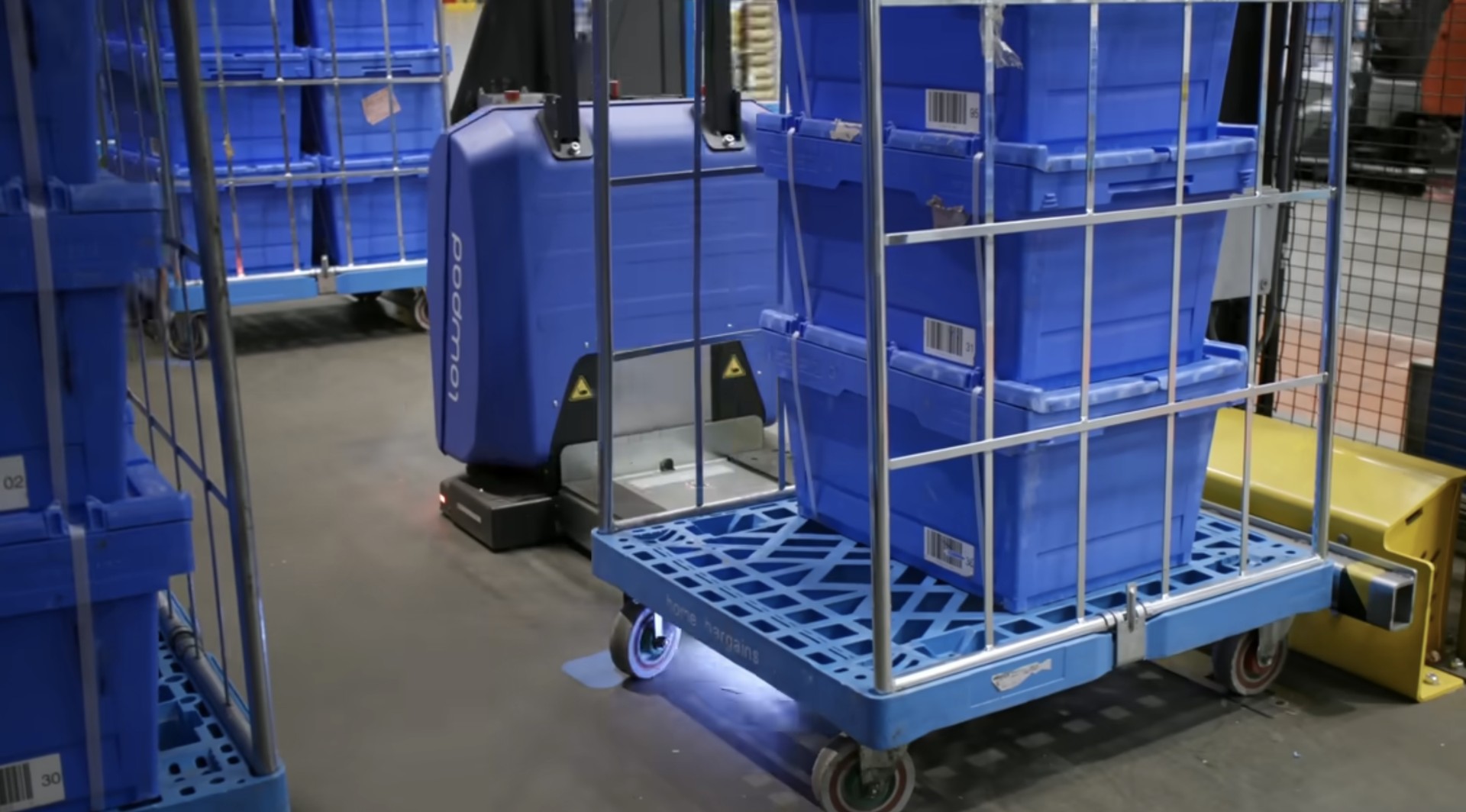 The deployment of 91 AMRs provides substantial automation capacity to handle the high volume of roll cage movements required in Home Bargains' distribution operations, replacing manual marshalling with consistent robotic performance.