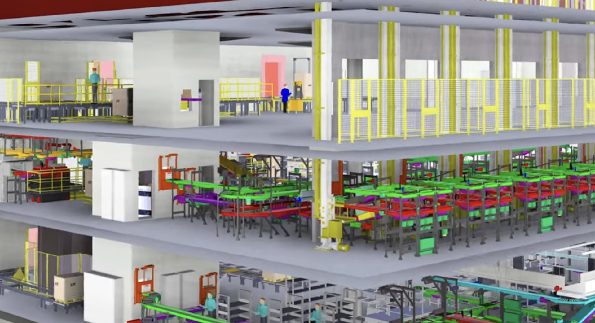 Spiral conveyors enable efficient inter-floor transport, maintaining the facility’s continuous material flow while saving space compared to traditional elevators or conveyors. This design choice reinforces the facility’s space-saving ethos.