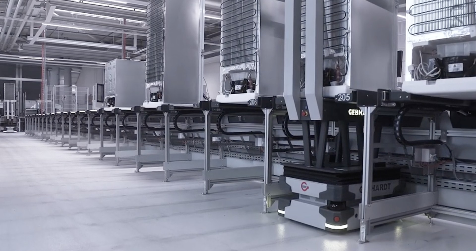 GEBHARDT Intralogistics Group served as the system integrator, accompanying the development process from the first sketch to the overall production system and realizing two intralogistics systems for the new plant. V-ZUG selected GEBHARDT because their system is clean, efficient, and easy to operate, and they found a partner with whom they could develop a tailor-made concept specific to refrigerator manufacturing requirements.