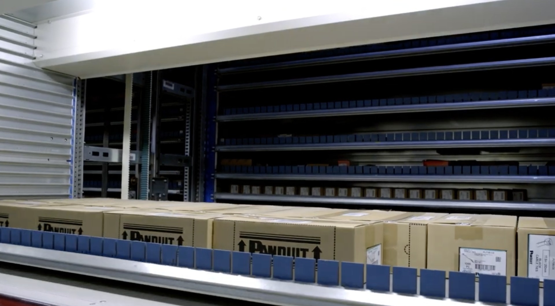 Optimizing warehouse space utilization for growing electrical parts distribution required innovative storage solutions. The vertical lift modules addressed this by utilizing the full ceiling height, creating high-density storage that maximizes capacity within the existing facility footprint.